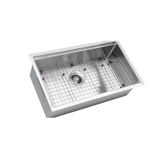 Évier de cuisine à cuve simple en acier inoxydable de 30 po avec grilles, calibre 16