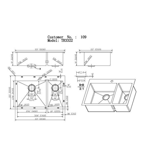 Cantina 33" 70/30 Stainless Steel Undermount Kitchen Sink - Rounded Corners