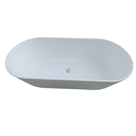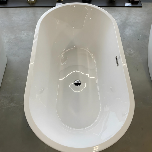 Baignoire autoportante de 67 po en acrylique, ovale avec trop-plein à fentes