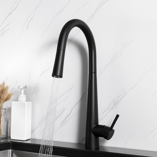 Robinet à poignée unique pour petite cuisine avec flexible en silicone noir
