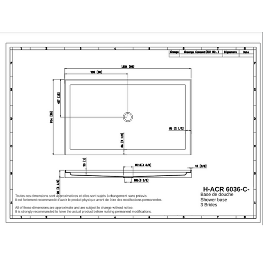 Base Réversible 36” x 60” avec Drain Linéaire et Flange pour Carrelage