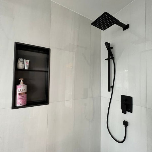 Ensemble de douche carré noir mat avec vanne d'équilibrage de pression à 3 fonctions