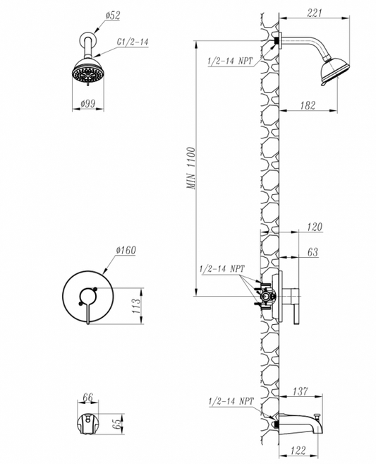 Kit de Douche Zirkon 10mm 32x48” - Noir