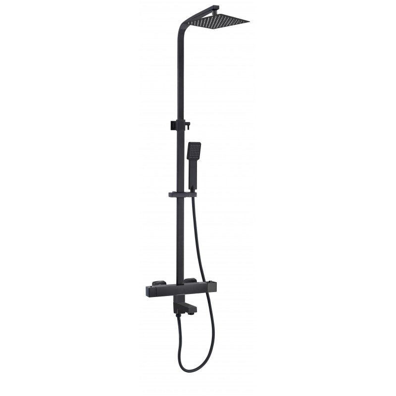 Ce robinet pour douche fini noir mat permet d'ajuster la hauteur de la tête de douche pluie et agit en tant que rail pour régler la hauteur de la douchette. Plus Effilé qu'une colonne de douche conventionnelle, vous apprécierez son allure industriel. Il y comprend aussi un robinet de bain et une douche à main.