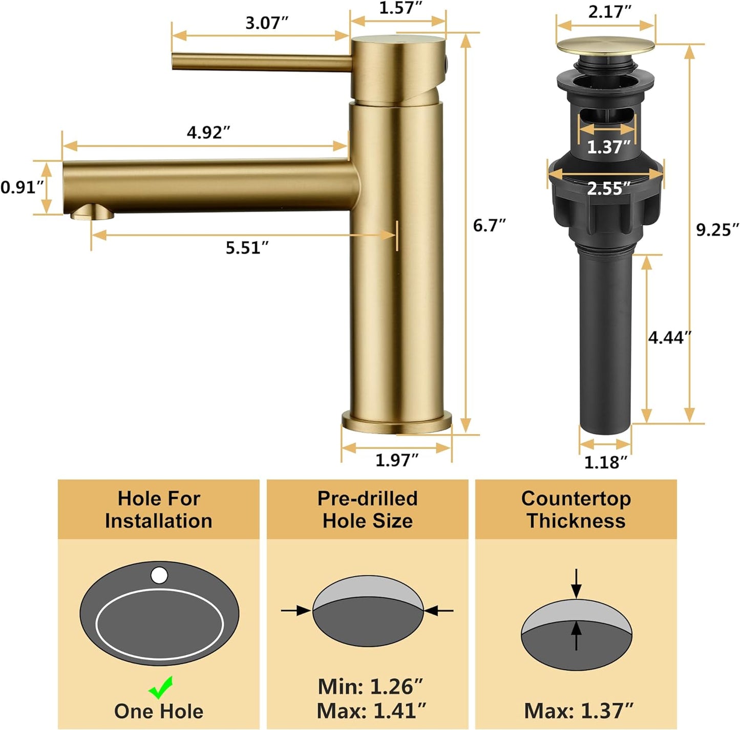 - Design efficace à poignée unique : robinet de salle de bain à poignée unique pour un contrôle facile du débit et de la température de l'eau pour votre commodité.