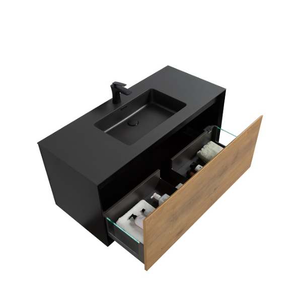 Améliorez votre salle de bain avec notre meuble-lavabo moderne et élégant, doté d'un somptueux plateau en quartz noir sable et de lumières LED intégrées dans l'étagère. Ce meuble raffiné ajoute une touche contemporaine et une note ludique à votre espace, alliant sophistication et fonctionnalité. Élevez la décoration de votre salle de bain avec ce meuble-lavabo unique et saisissant dès aujourd'hui.