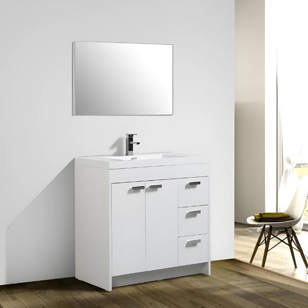 Redonnez vie à votre salle de bain avec la vanité Lugano de 36 pouces, dotée d'un design chic et minimaliste ainsi que d'options de rangement spacieuses. Élevez votre espace dès aujourd'hui avec cet ajout élégant. *Le miroir, le robinet et le bouchon de drain sont vendus séparément.