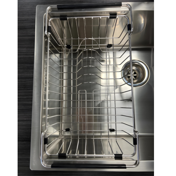 Améliorez votre cuisine avec notre égouttoir élégant, fabriqué en acier inoxydable de qualité supérieure SUS304. Séchez facilement vos fruits, vaisselle et ustensiles avec ce rack durable. Équipé de parties en caoutchouc silicone, il évite les rayures sur votre évier de cuisine. Parfaitement compatible avec nos éviers de cuisine R2818 et R3318 50/50-18G. Achetez maintenant pour ajouter commodité et élégance à votre cuisine !