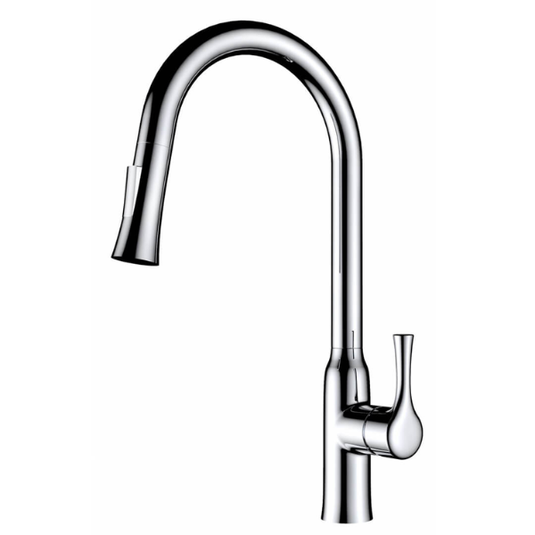 Le robinet Parker en chrome est équipé d'un bec de cygne pivotant et d'un tuyau flexible. Il comprend une tête à deux fonctions (jet et pulvérisation) avec un fonctionnement à une seule poignée, et a un débit maximal de 1,8 gallons par minute. Disponible en chrome, noir mat, nickel satiné et or brossé, il est fabriqué en laiton. Les dimensions sont de 17 pouces de longueur, 1,37 pouce de largeur et 1,37 pouce de hauteur.